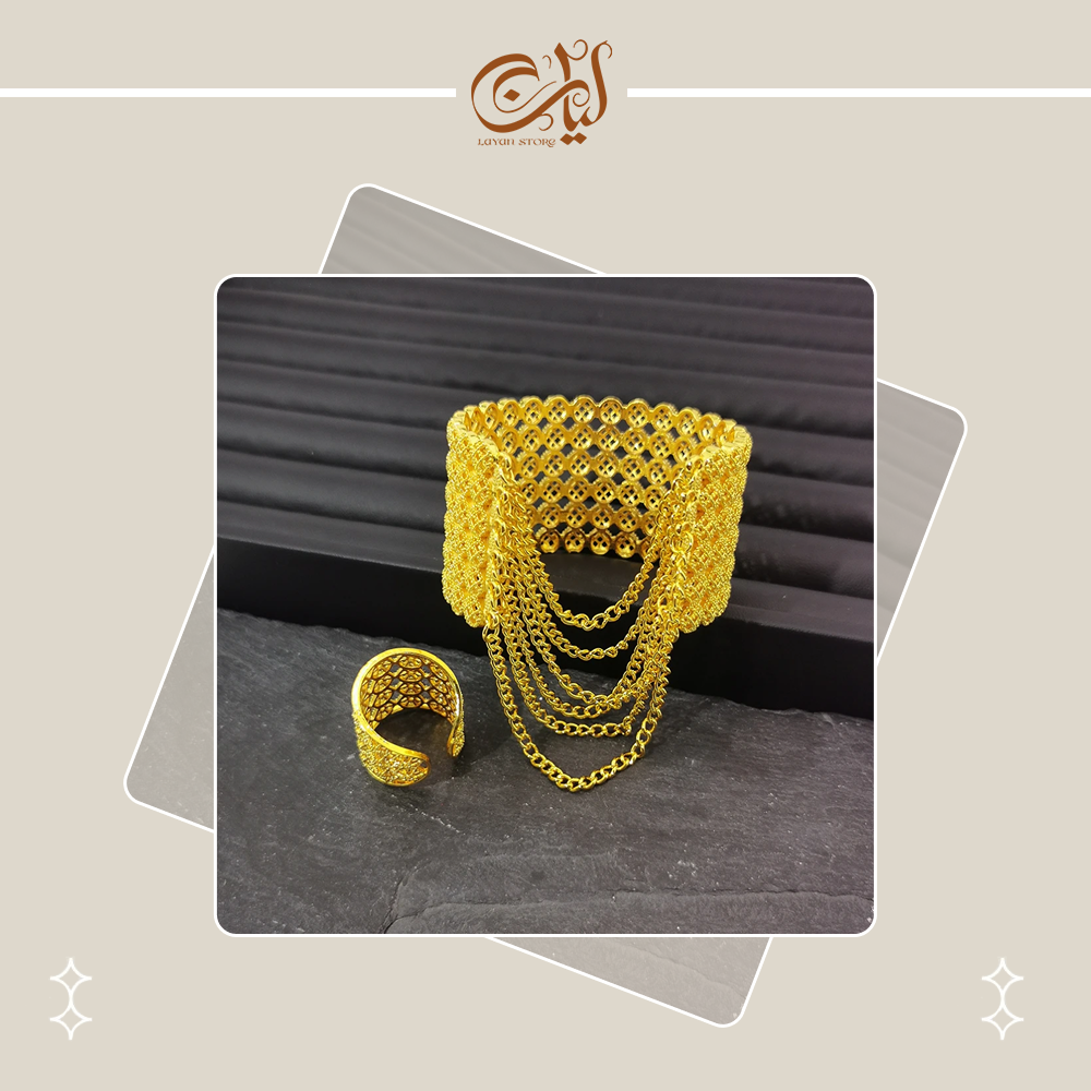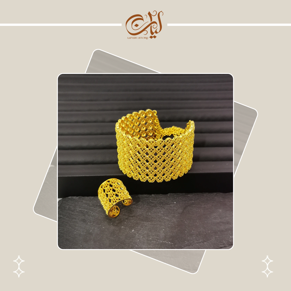 استمتعي بإطلالة مميزة من متجر ليان مع طقم انسيال وخاتم ذهب دبي الفاخرة، التي تشمل أساور معدنية مستديرة مجوفة وخواتم واسعة بتصميم عصري تم تصميم هذه المجموعة بعناية لتضفي لمسة من الجاذبية والأناقة على إطلالتك.